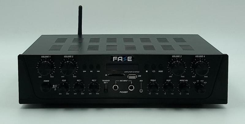 La série PV2 est une série d'amplificateurs multicanaux intelligents avec technologie sans fil 4.2 BT et fonctionne avec tous les appareils les plus récents, notamment les smartphones, les tablettes, les ordinateurs portables et les ordinateurs. Profitez du doux son de votre collection de musique numérique personnelle. Tous les systèmes offrent la possibilité d'envoyer de la musique ou des annonces sur les différents canaux souhaités (Multiroom) avec, pour chaque canal, un réglage de volume. Avec port USB et insert pour carte SD pour lire des fichiers MP3/WMA, radio FM avec écran LED et deux entrées micro avec réglages des graves/aigus : cet amplificateur convient à un usage domestique ou professionnel.