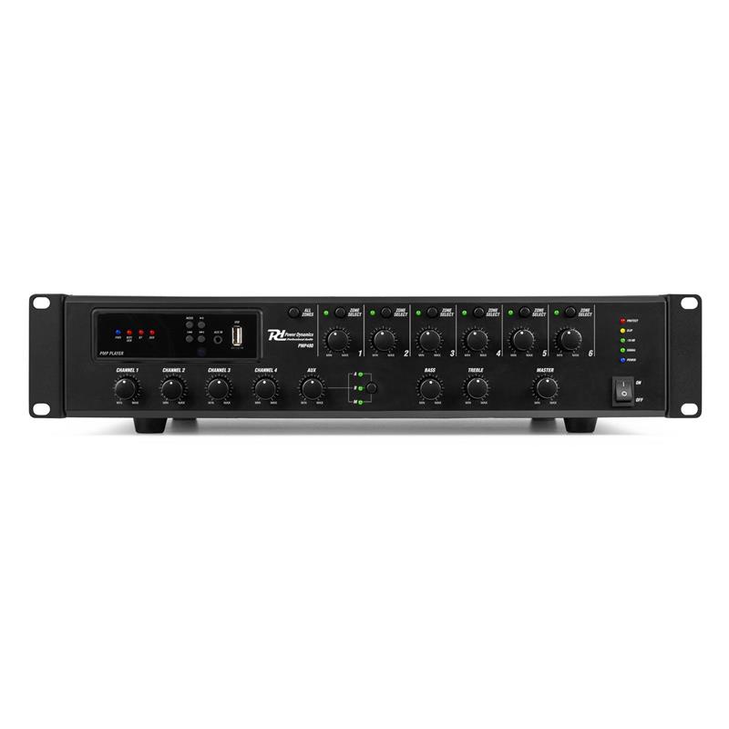 L’amplificateur mixeur 6 zones de la série PMP est un système Public Adress tout en un, utilisable pour divers environnements tels que magasins, usines, écoles et hôpitaux. Son design sobre et ses performances exceptionnelles font de cet amplificateur l’appareil idéal pour diffuser des messages et de la musique d’ambiance tout en offrant une adaptabilité parfaite et une fiabilité inégalée. Que vous ayez besoin d’une sortie 70 V/100 V ou 4-16 ohms, de couper le son pour une priorité Mic/téléphone, cette série offre une flexibilité maximale. De plus, cet amplificateur délivre un son cristallin, de grande qualité et dispose d’une fonction priorité, d’un réglage de volume, d’une fonction Carillon et autre un appareil convivial et riche en fonctionnalités.
