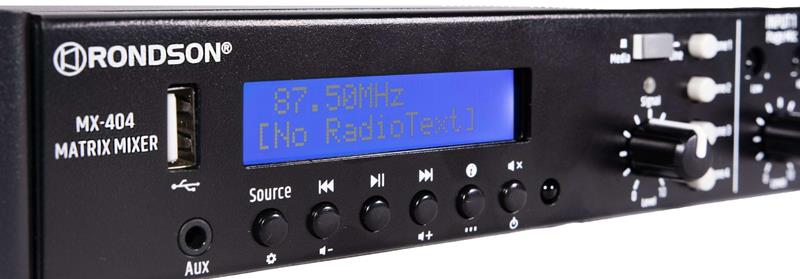 Le préamplificateur mélangeur MX-404 offre 4 entrées routables sur 4 zones de sortie contrôlables séparément